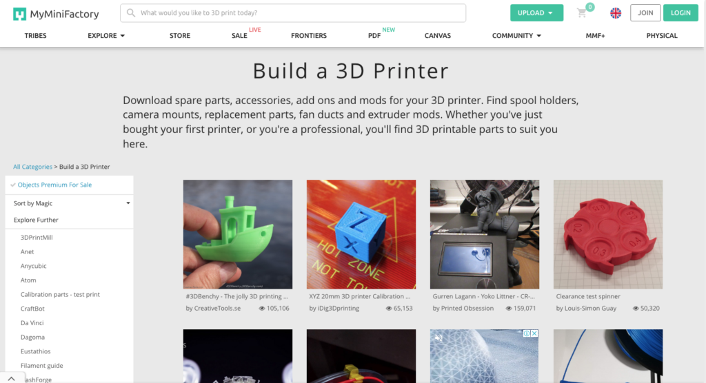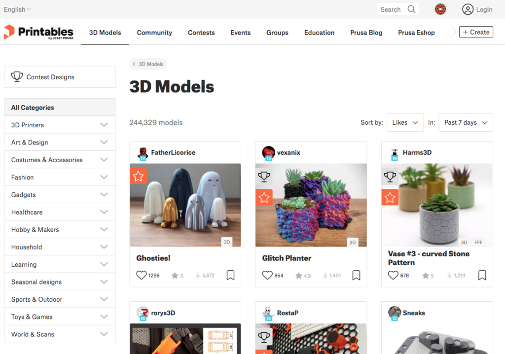 Prusa Printers – это вполне себе отличная платформа чешского инженера Йозефа Пруши, его имя известно всем энтузиастам аддитивных технологий. Но правда в том, что на этой площадке Йозеф, и вся его команда, предлагают обывателям не только 3d-принтеры, но также 3d-модели, при этом абсолютно бесплатно, это самое лучшее предложение что могли сделать. Важной особенностью данной площадки являются то, что она готова публиковать не только 3d-модели, но также и готовый машинный код. Конечно это хорошо, потому что пользователи могут напрямую отправлять модель на 3d печать, без суеты со слайсером. Но другая сторона монеты не так радужна, потому что зачастую бывают несовместимости. Так что на будущее: в отношении 3d-моделей будьте всегда осторожны, но если вас берут большие сомнения, то просто скачиваете STL-файлы, и готовьте код самостоятельно.