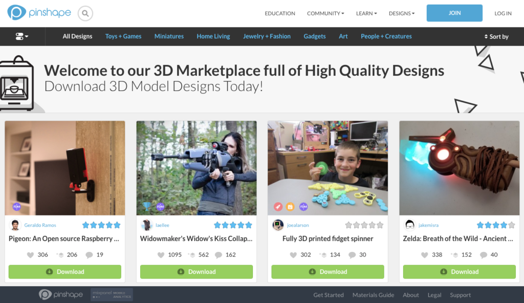 Pins Shape – это еще один современный источник 3d-моделей, но уже канадского происхождения. Он применяется по всему миру, в том числе и у нас. Изначально был вариант площадки, который просуществовал совсем недолгое время, приблизительно около двух лет, но вскоре после закрытия, его выкупил знаменитый американский производитель 3d-принтеров – Formlabs. В данный момент, на площадке все идет замечательно. При всем этом, делается очень много полезного контента, всем пользователям данного ресурса. Платформа содержит в себе несколько тысяч разных проектов. Как и другие подобные платформы Pins Shape предложит вам платные и абсолютно бесплатные 3d-модели. Очень здорово то, что разместить на этой площадке свои работы в каталог, может любой желающий энтузиаст.