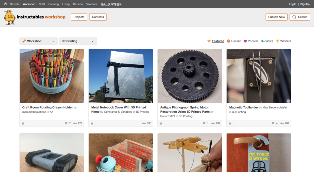 Instructables – пожалуй это больше, чем просто интернет-площадка 3d-моделей. На эту платформу в первую очередь нужно обратить внимание самодельщиков, так как на Instructables размещают не только 3d-модели, а также комплексные компании в основном с использованием электроники, предположительно для занятия хобби, но бывают частые случаи что и вполне серьезные.